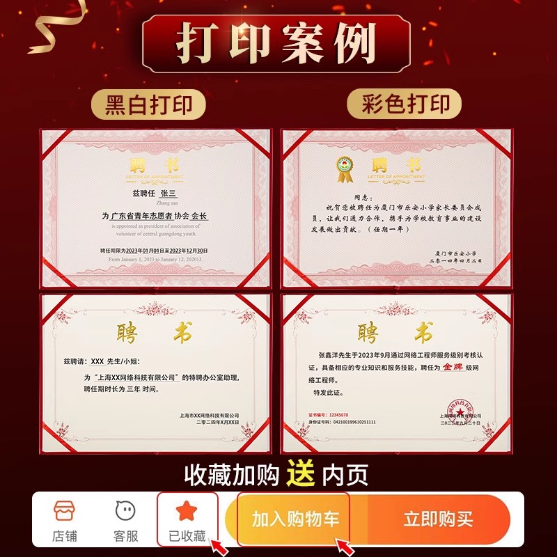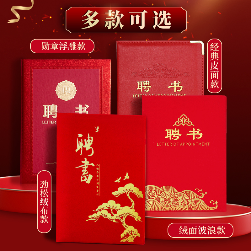 高档聘书定制绒面家委会班干部聘书壳A4聘任书外壳封面聘请书任命书专业技术人员证书套内页内芯打印制作LOGO