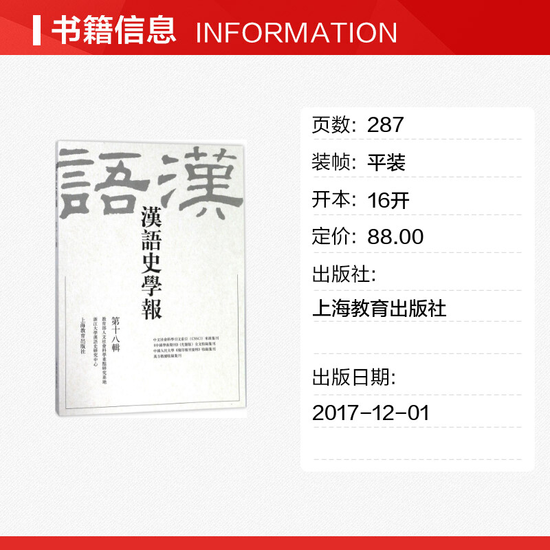 语言文字文教 主编 新华书店正版 图书籍 社 汉语史学报第18辑 上海教育出版 王云路