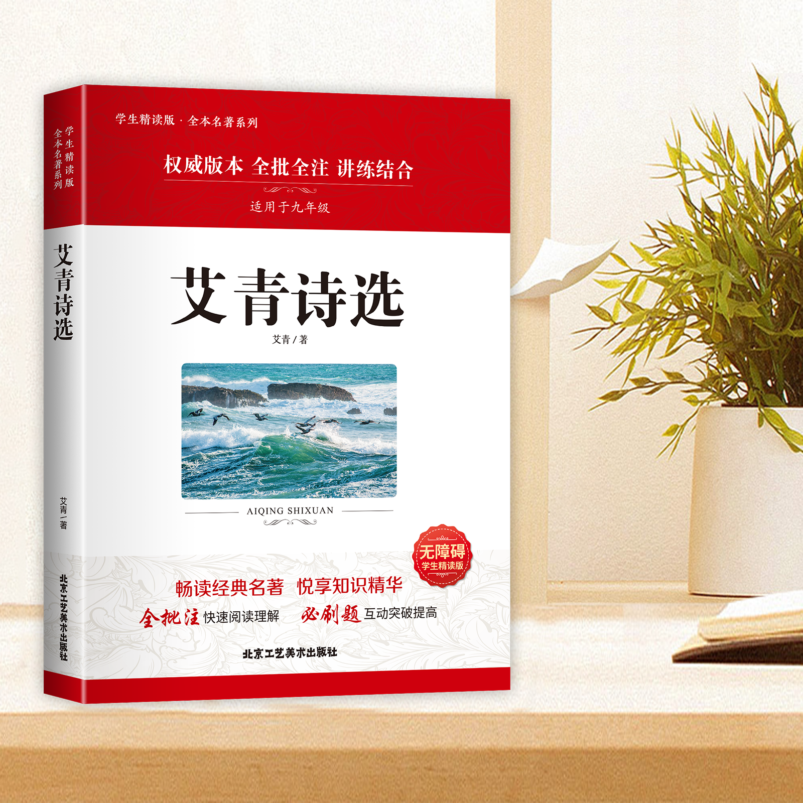 社九年级上下册必读课外名著阅读书籍初三初中生语文教材配套阅读书目无删减 北京工业美术出版 艾青诗选水浒传原著正版 3册完整版