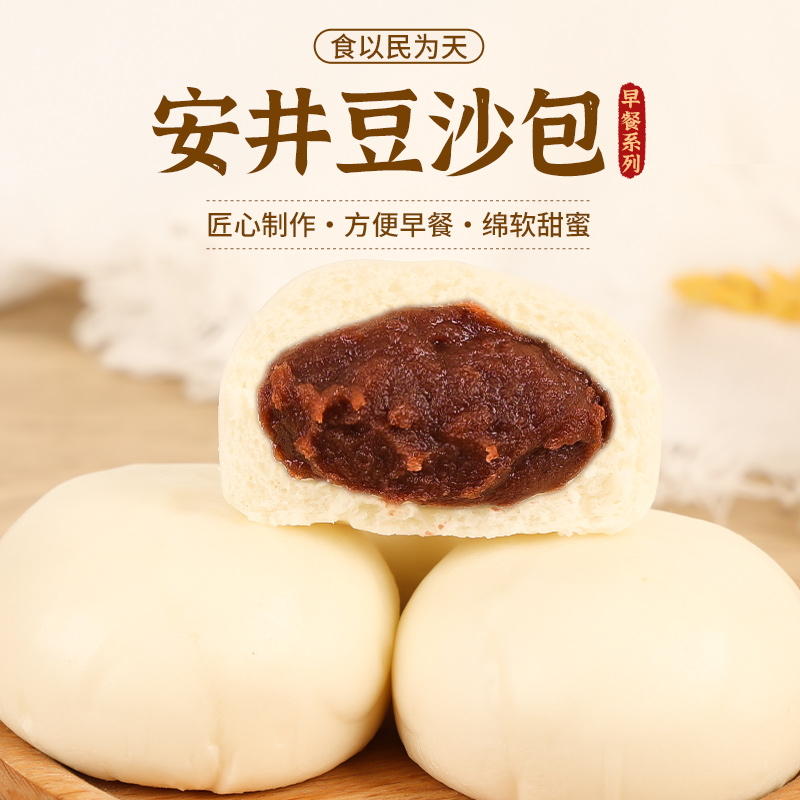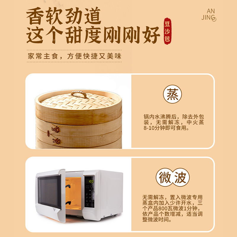 安井豆沙包早餐半成品家用速冻包子面点组合加热即食核桃包奶黄包