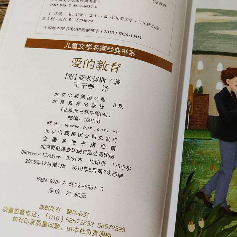 亚米契斯王干卿译三四年级小学生课外阅读必读书籍青少版 原著完整版 教材版 经典 社bd 爱 书目六年级儿童文学北京教育出版 教育正版