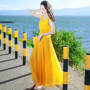 沙滩裙子 茶歇裙度假风中长款 雪纺碎花吊带连衣裙2025夏秋新款 法式