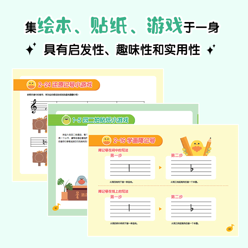 拍号和音乐中 少儿音乐启蒙钢琴识谱入门知识 儿童乐理游戏贴纸书1 各种样 音符 3册 记号 休止符和附点音符 赠全套贴纸
