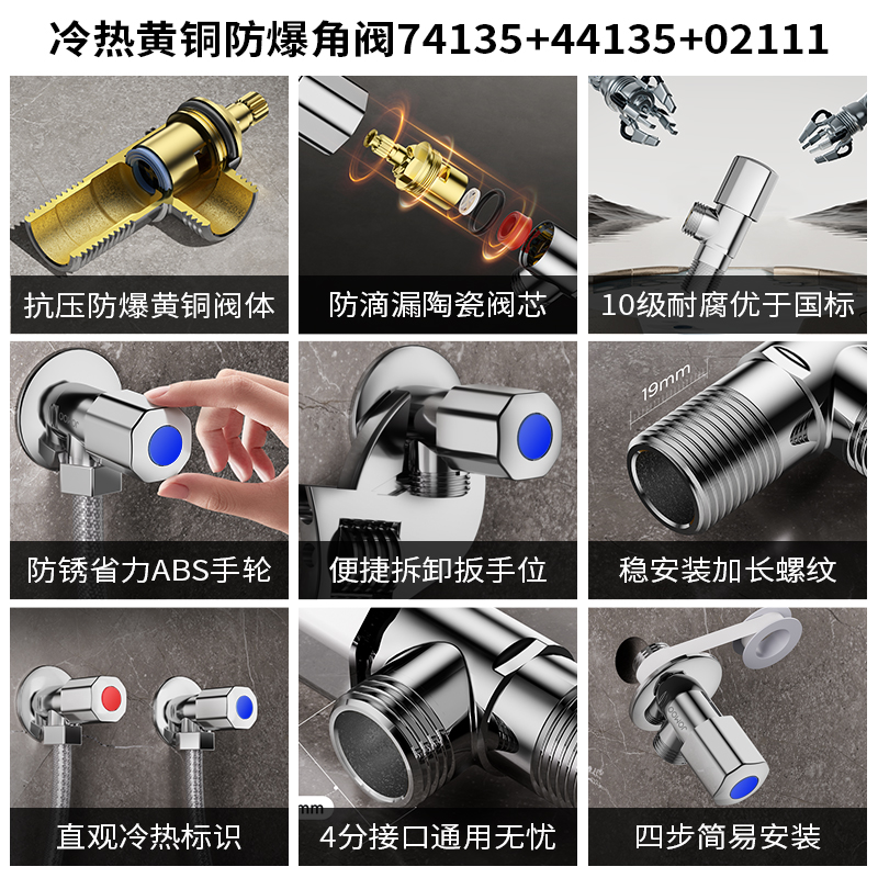 九牧卫浴加厚黄铜角阀冷热三角阀热水器阀门大流量开关官方旗舰店