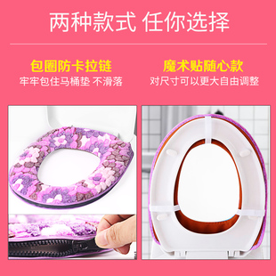 马桶垫坐垫暖暖珊瑚绒家用拉链式 防水可爱u形通用坐便器垫子女冬