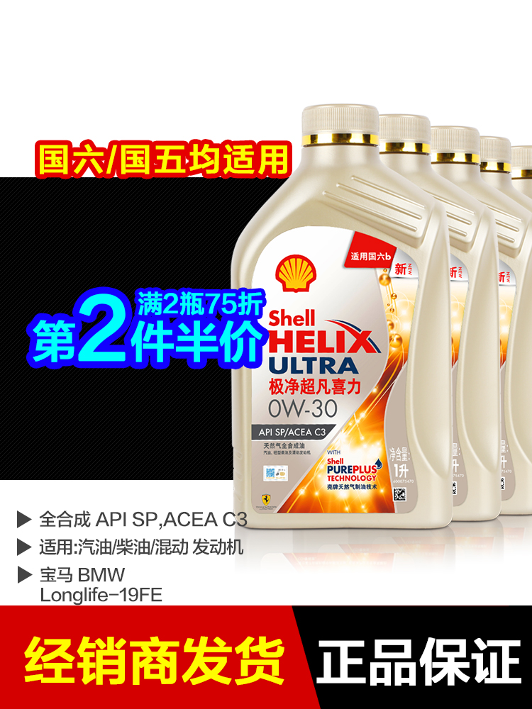 壳牌正品 极净超凡喜力0W30发动机润滑油1L柴汽通用全合成机油 金装
