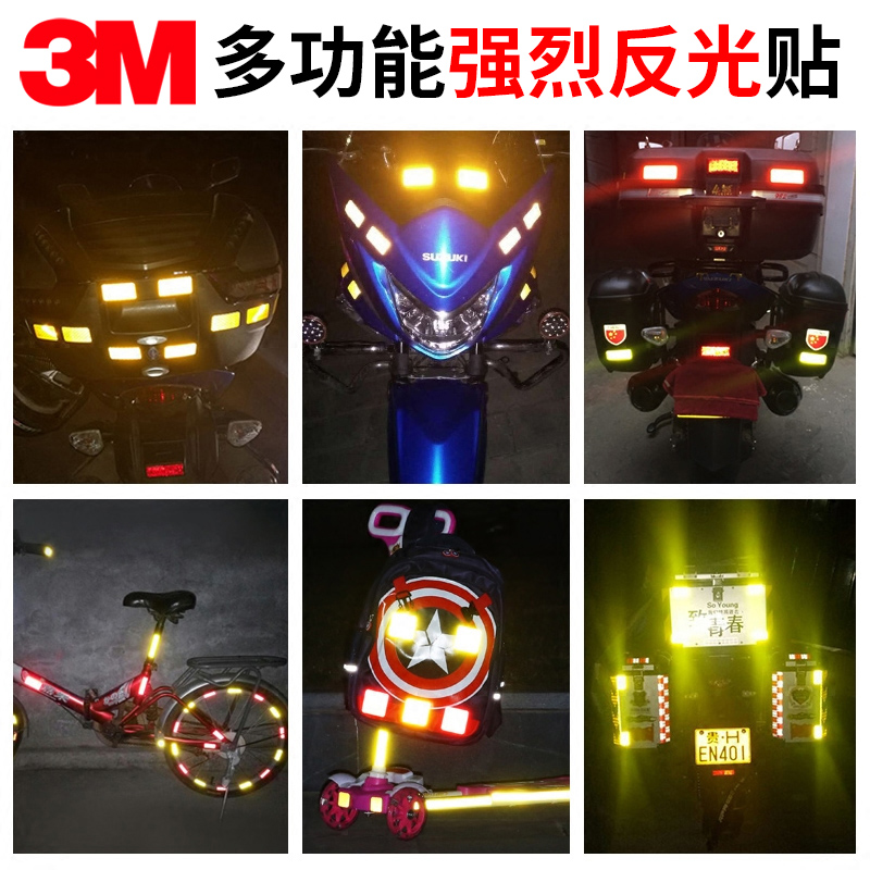 3M反光贴条摩托车电动车汽车头盔警示车身划痕装 饰自行车贴纸夜光