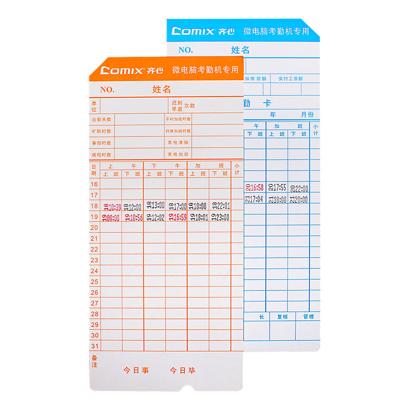 爱宝新密双面打印考勤机打卡机纸卡双面微电脑员工上班签到打卡钟配件通用卡纸一包50张白卡纸