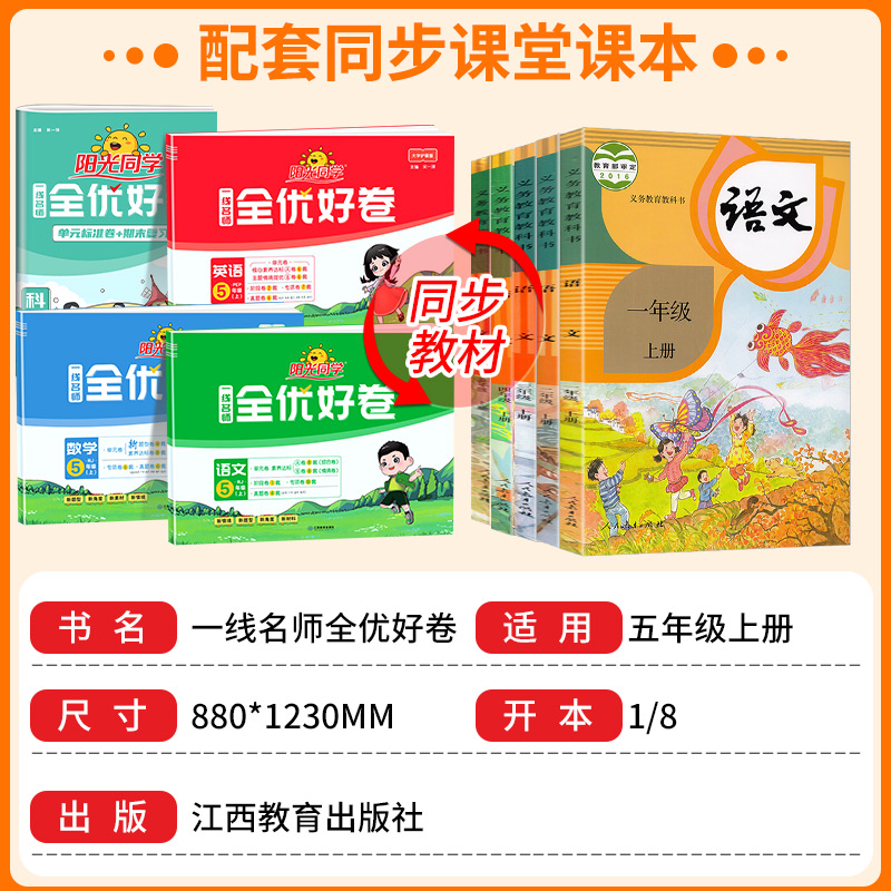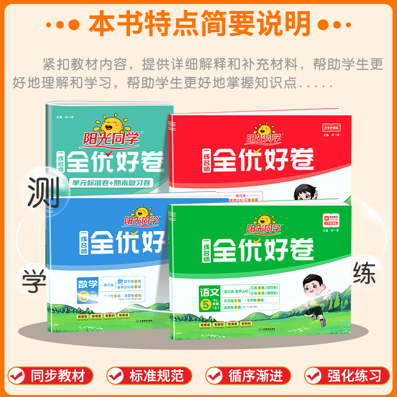 达标测试卷考试卷子书训练 小学教材同步配套练习册单元 阳光同学五年级上册下册语文数学英语科学全优好卷全套人教版 北师大教科版