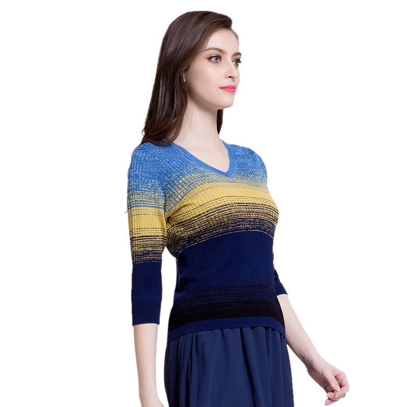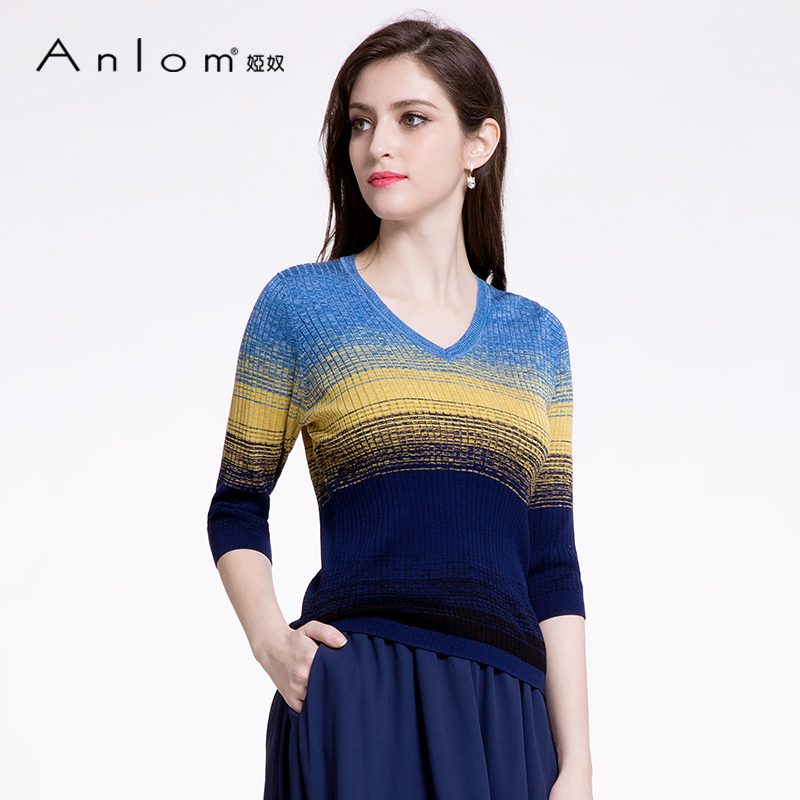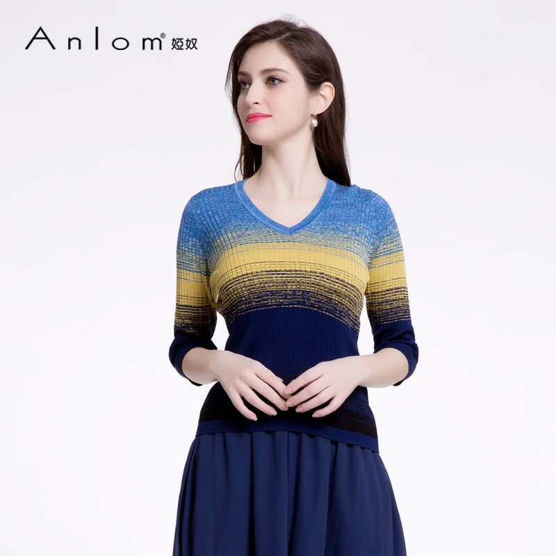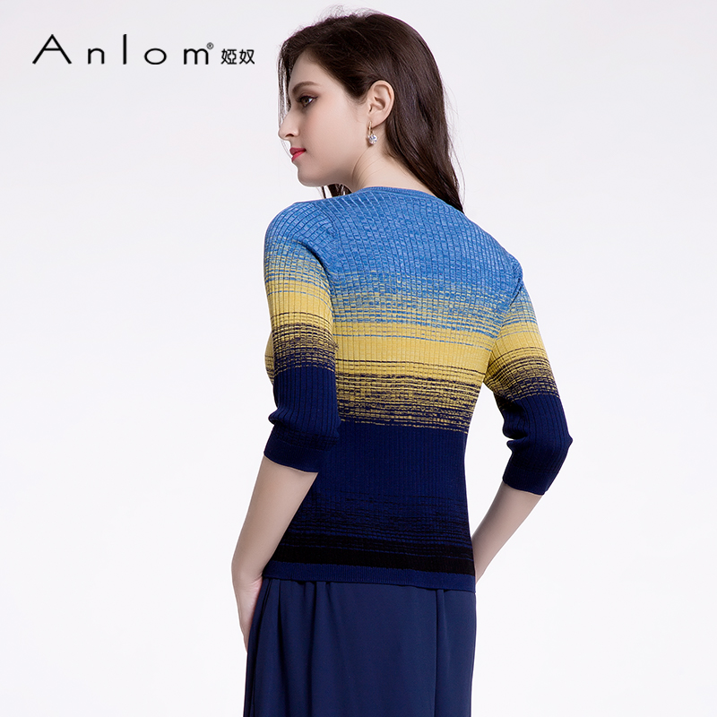 时尚 修身 条纹休闲桑蚕丝针织衫 女上衣长袖 Anlom 套衫 娅奴秋冬新款