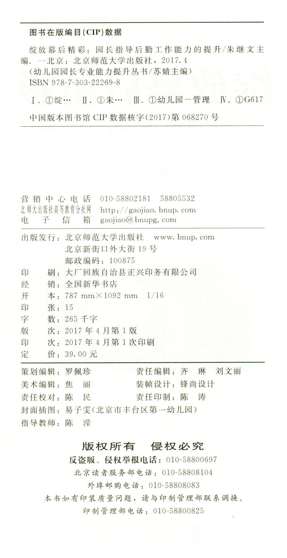 9787303222698 幼儿园园长专业能力提升丛书 北京师范大学出版 绽放幕后精彩 正版 提升 社 书籍 园长指导后勤工作能力