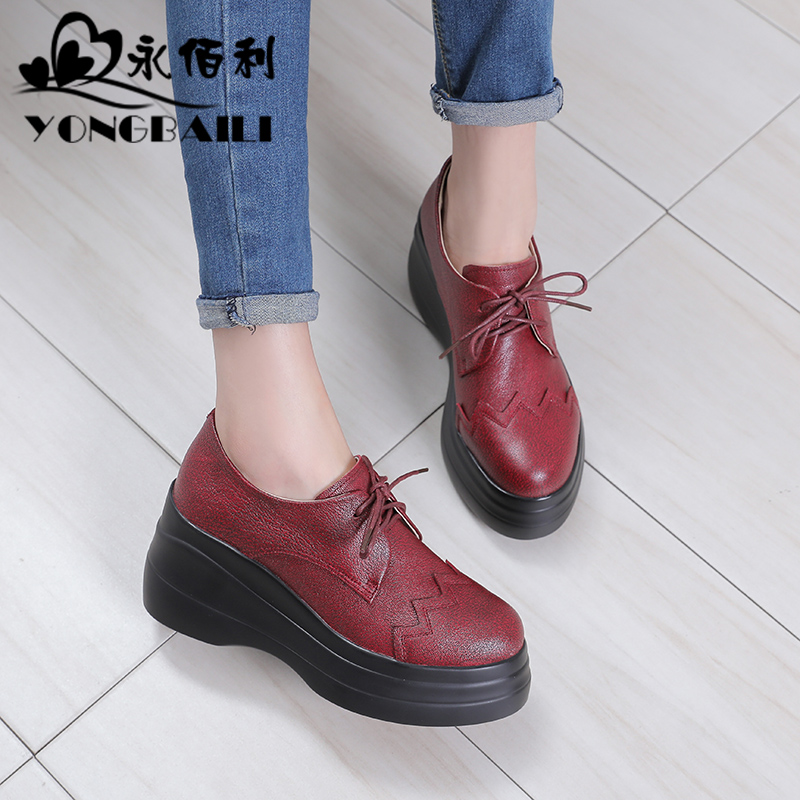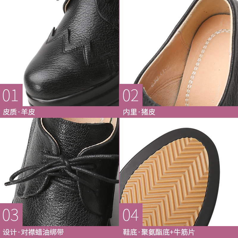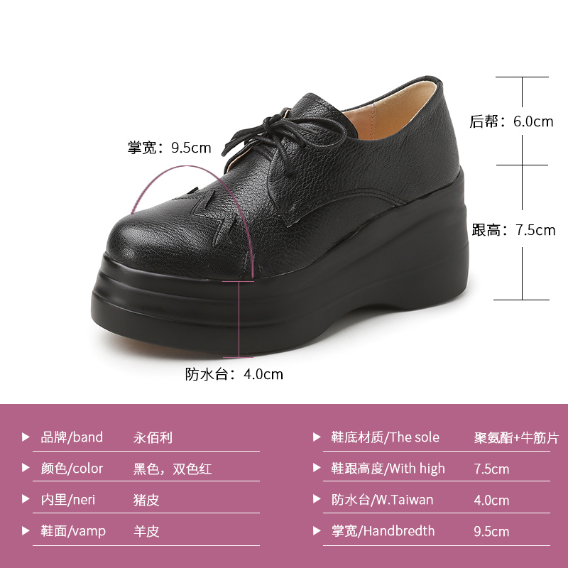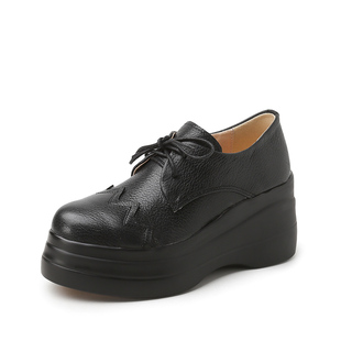 女2025春季 女皮鞋 新款 软底增高单鞋 休闲羊皮松糕鞋 厚底黑色皮鞋