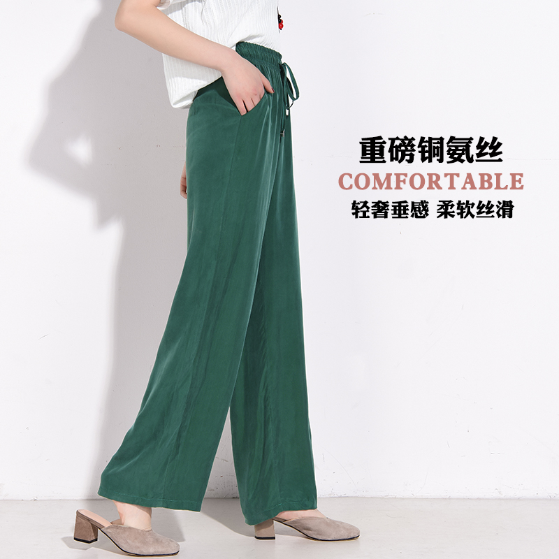 冰丝凉感宽松直筒拖地休闲长裤 薄款 子 女高腰垂感夏季 铜氨丝阔腿裤