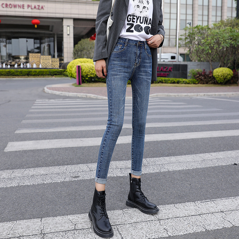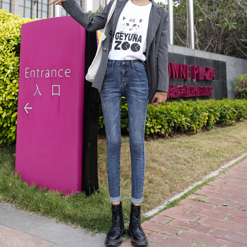 女春装 显瘦显高九分小脚裤 百搭紧身裤 修身 子2021年新款 高腰牛仔裤