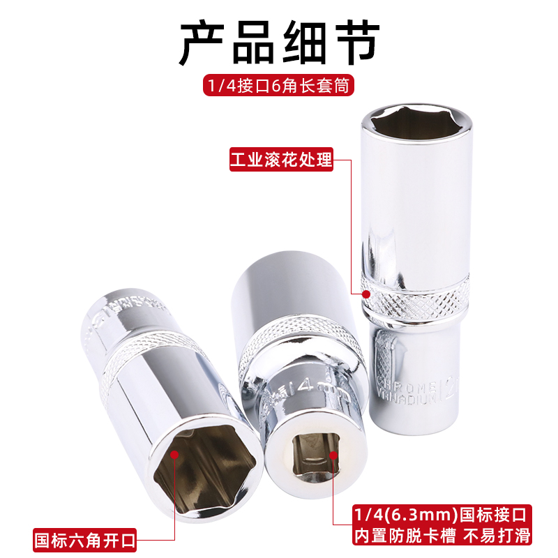 14mm 4小套筒小飞六角加长套头6.3mm小快速扳手套头7
