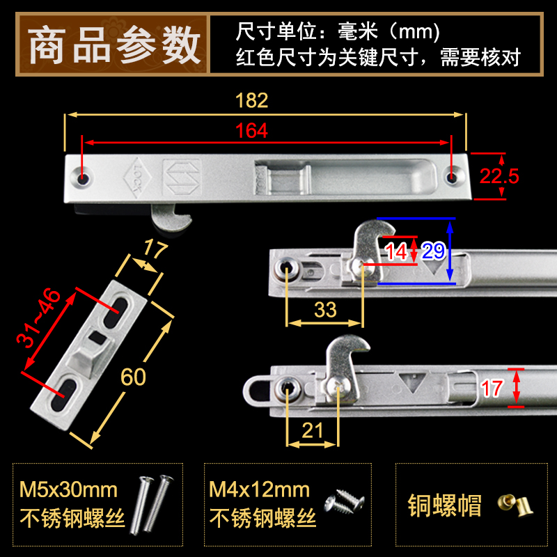 迪福德 铝合金窗钩锁单面锁扣平移推拉窗户彩铝门窗勾锁 90型老式