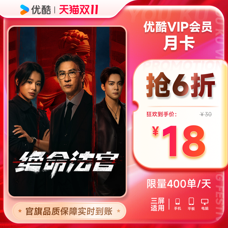 优酷会员月卡 月 官方充值优酷vip月卡优酷影视 老用户15元