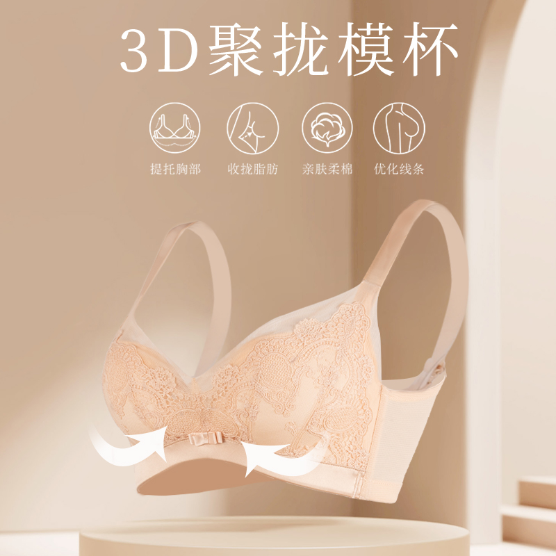 幂姿内衣女士小胸聚拢调整型性感无钢圈收副乳防下垂胸罩文胸套装