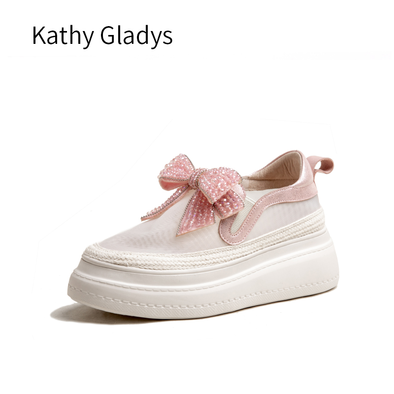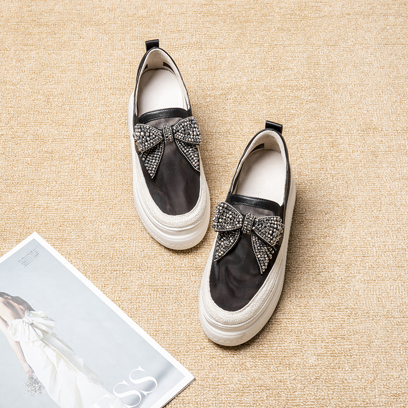 真皮水钻透气网纱蝴蝶结麻绳厚底松糕跟单鞋 包头凉鞋 女春夏款