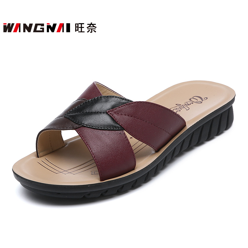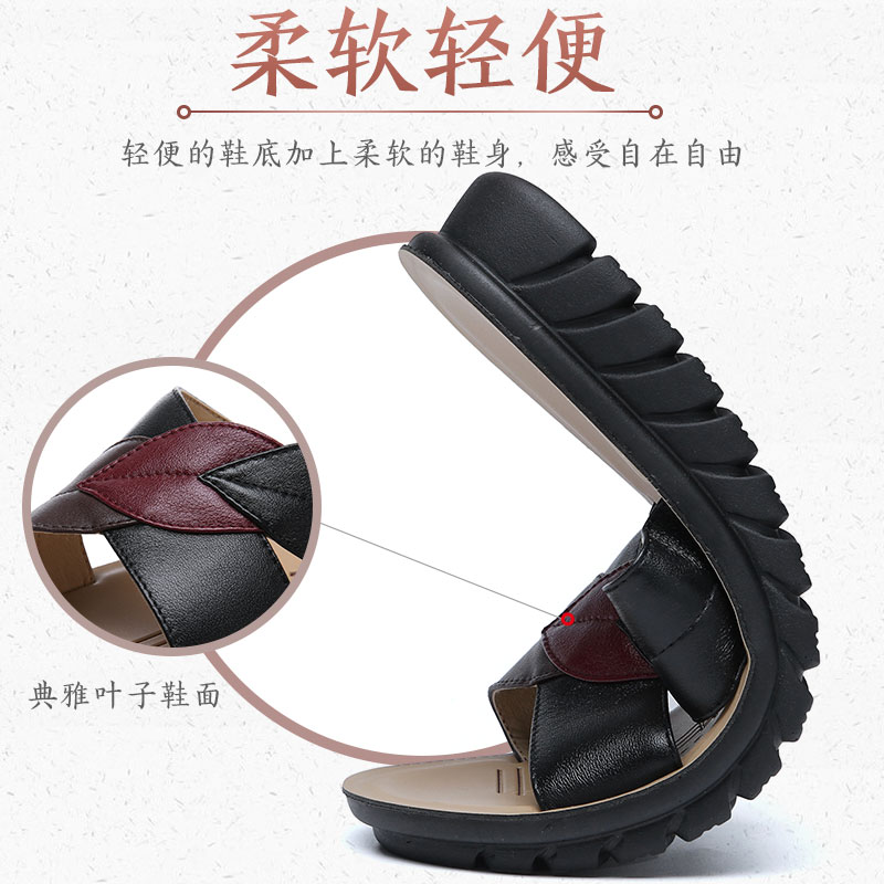 外穿清仓 女中老年平底平跟皮凉拖鞋 旺奈妈妈拖鞋 拼色防滑老人拖鞋