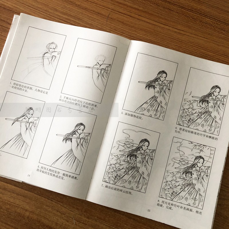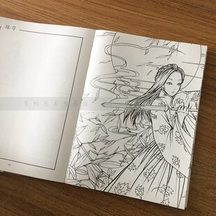 天津人民美术出版 花神赋 古风减压涂色填色本线描集彩铅绘画书籍 古风人物涂色画册古代人物白描线稿 社 古风花美人涂色集2