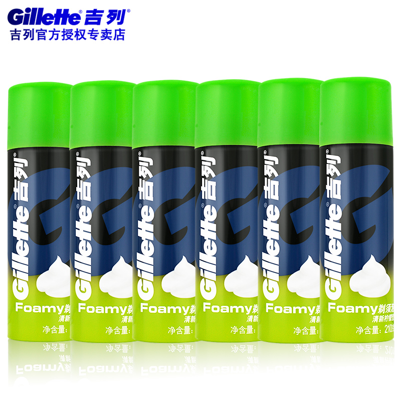 吉列剃须泡刮胡膏吉利男士 刮胡刀剃须液刮胡子泡沫210g6瓶组合