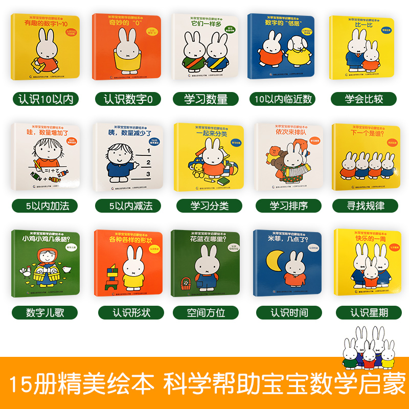 米菲宝宝数学启蒙绘本全套15册 家长手册 幼儿园数学启蒙小班中班学前教材书籍1岁2岁 4岁儿童数学启蒙幼儿思维训练 送挂图