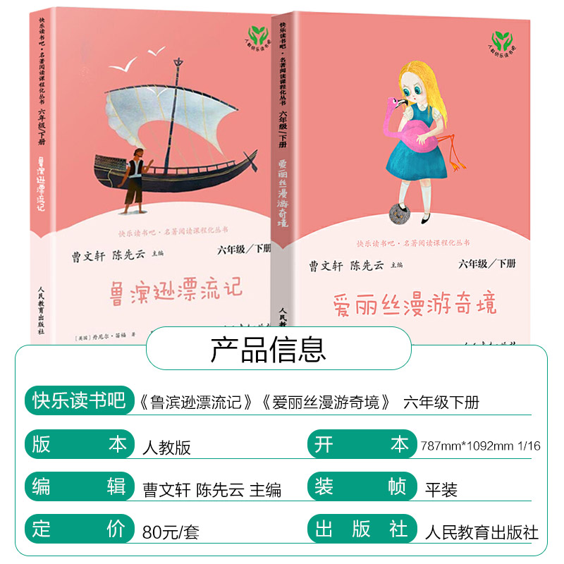 六年级必读课外书 课外书必读鲁滨逊漂流记爱丽丝漫游奇境曹文轩陈先云部编小学教材课外阅读书籍 快乐读书吧六年级下册全2册人教版