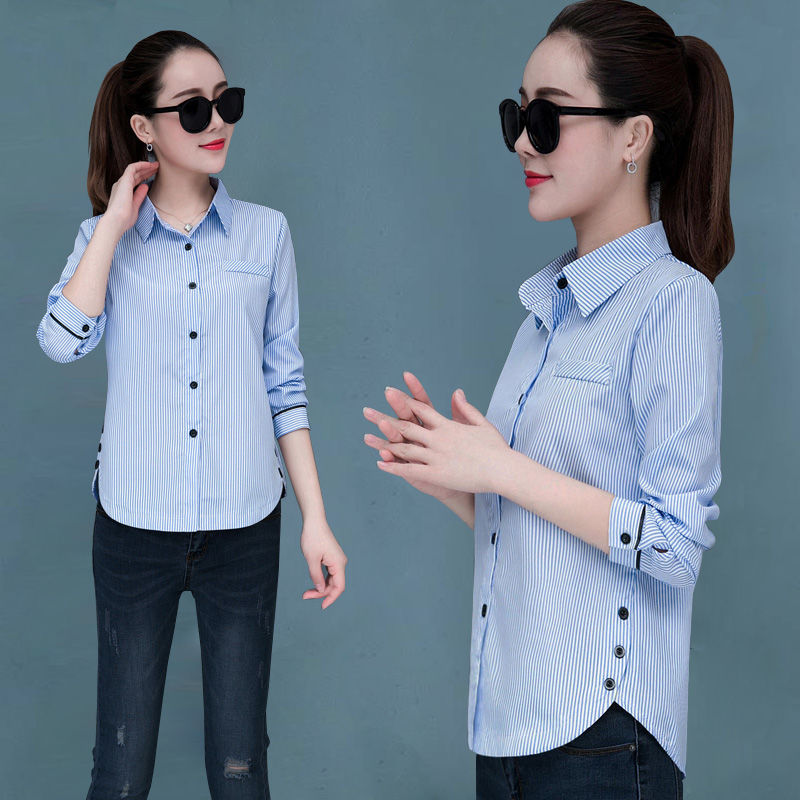 衬衫 蓝白竖条纹刺绣基础简约宽松kang皱长袖 VISION经典 CLIMAX