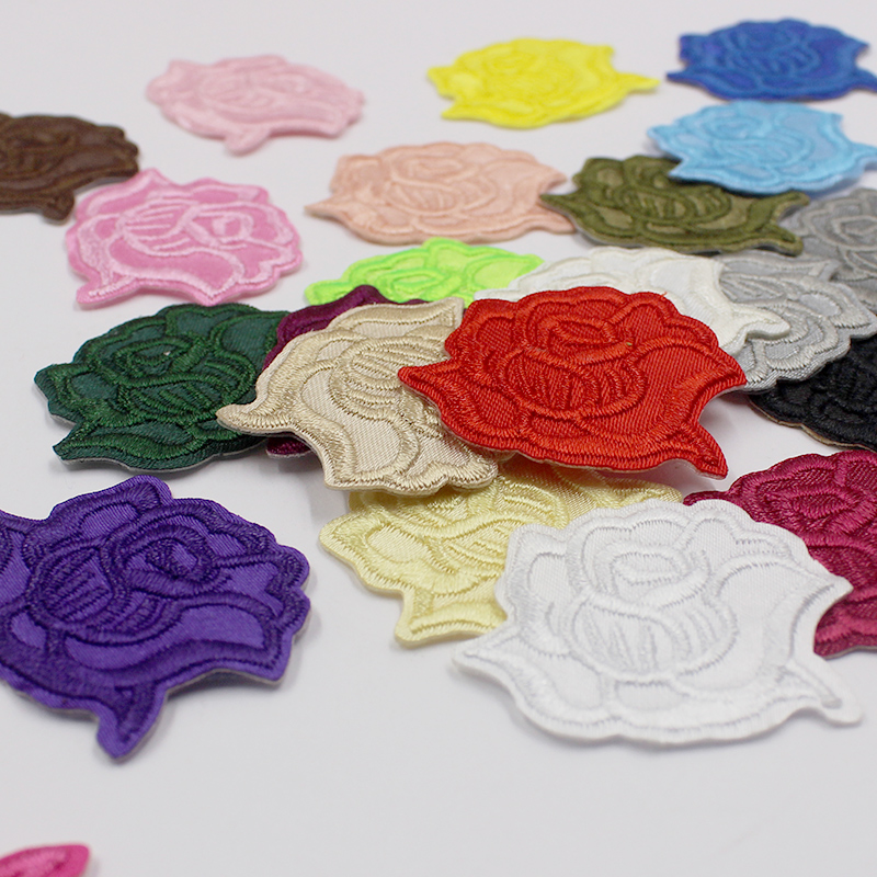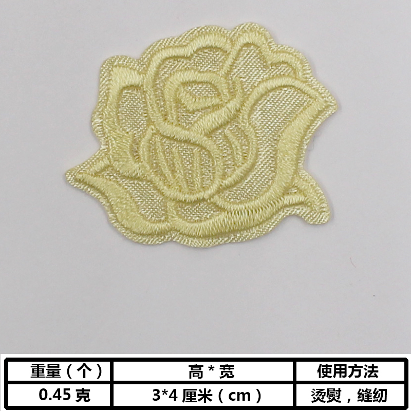 小号玫瑰花朵图案布贴衣服裤 饰修补百搭刺绣补丁贴花 子桌布床单装