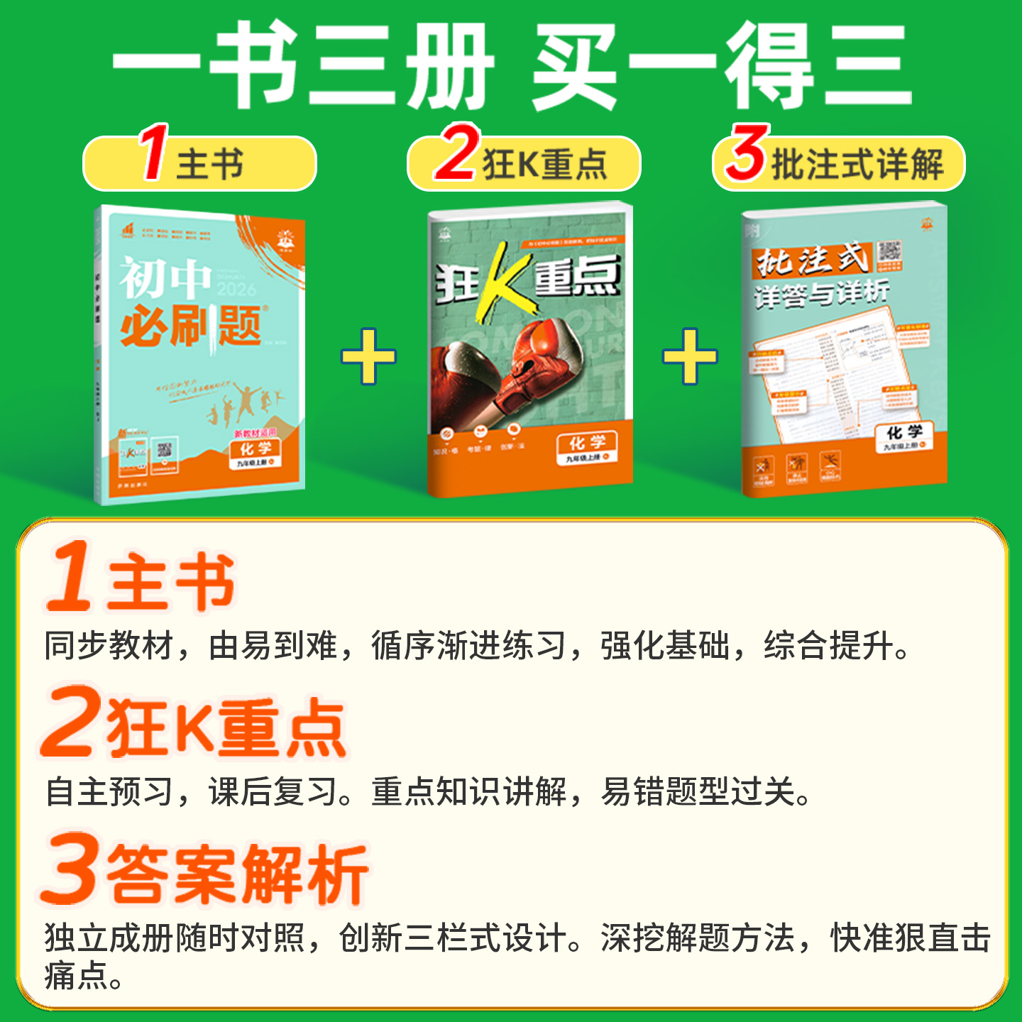 课本同步练习册提优训练中考狂k重点教辅资料书 沪教科粤初三必刷题2026版 化学必刷题初中必刷题九上化学九年级上册人教版 鲁教版