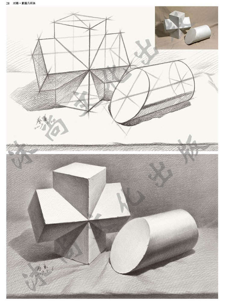 对路素描几何体 国美励志石膏静物形体照片对画临摹范本单体结构手绘画册集者技法解析高艺校联考美术教程书