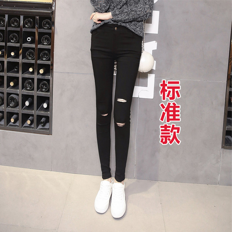 破洞打底裤 韩版 薄款 外穿裤 百搭夏 春季 子小脚黑色九分女裤 2025新款
