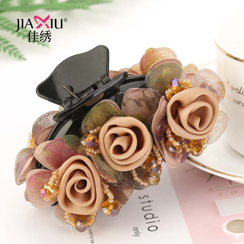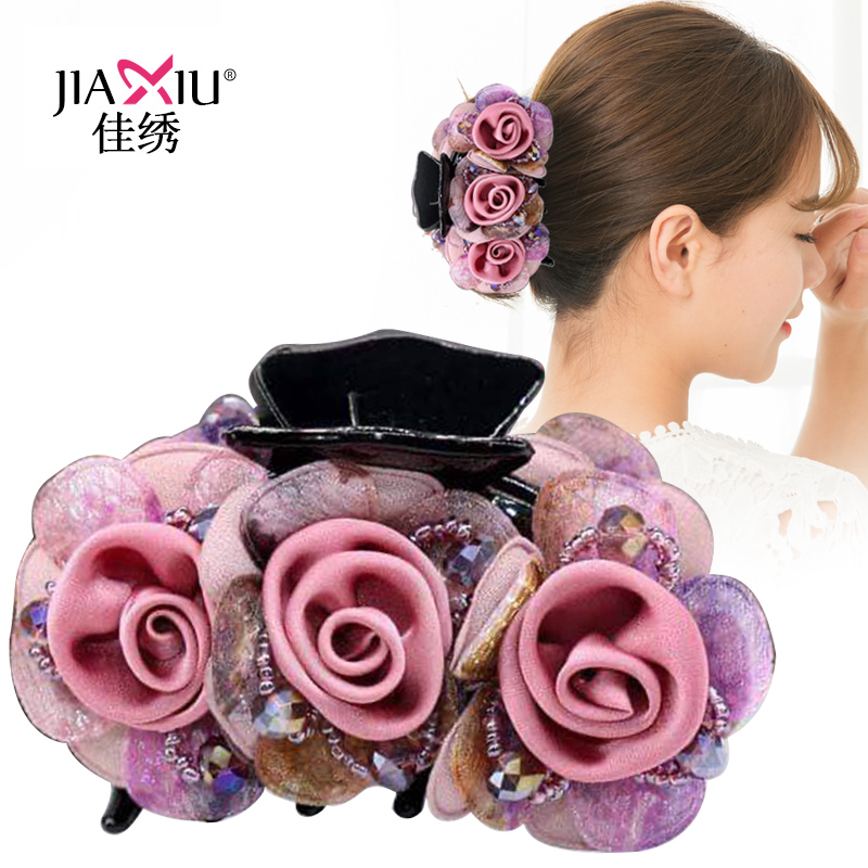 韩国花朵抓夹盘发头发夹子成人时尚 发抓简约头饰顶夹马尾发卡饰品