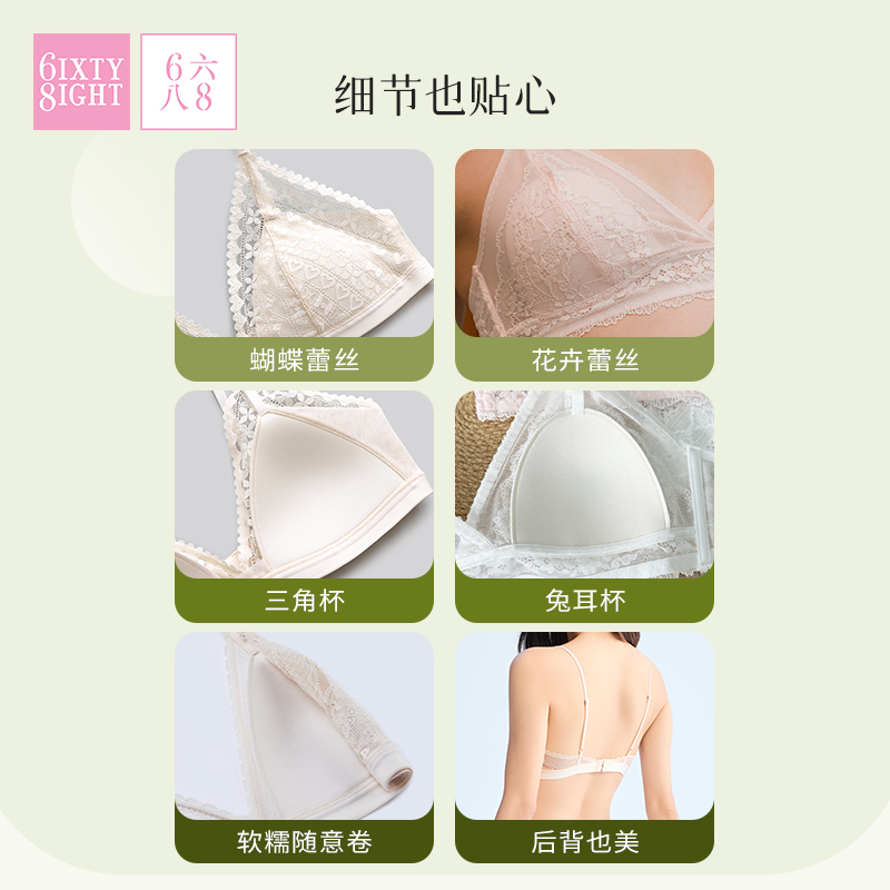 68性感三角杯内衣薄透气女士柔软防凸点无钢圈文胸罩 蕾丝 法式