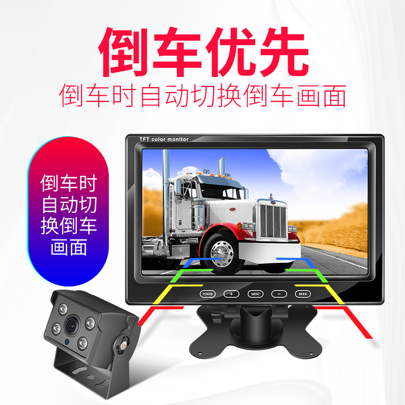 大货车高清倒车影像12v24v全彩夜视7寸车载显示器收割机监控通用