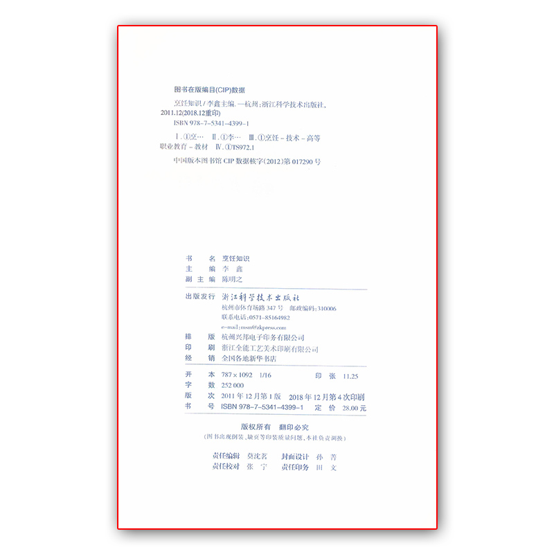 社 烹饪知识 浙江科学技术出版 副主编陈明之 高等职业技术旅游专业烹饪操 主编李鑫
