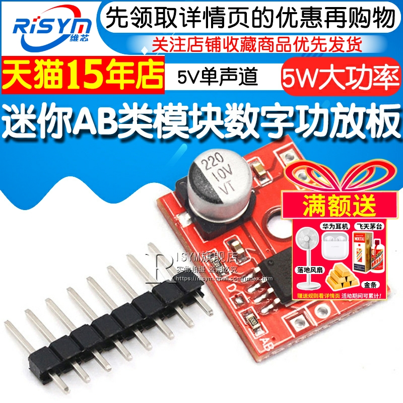 迷你AB类模块数字功放板5V单声道XS987 5.5V 5W音频功率放大器2.5