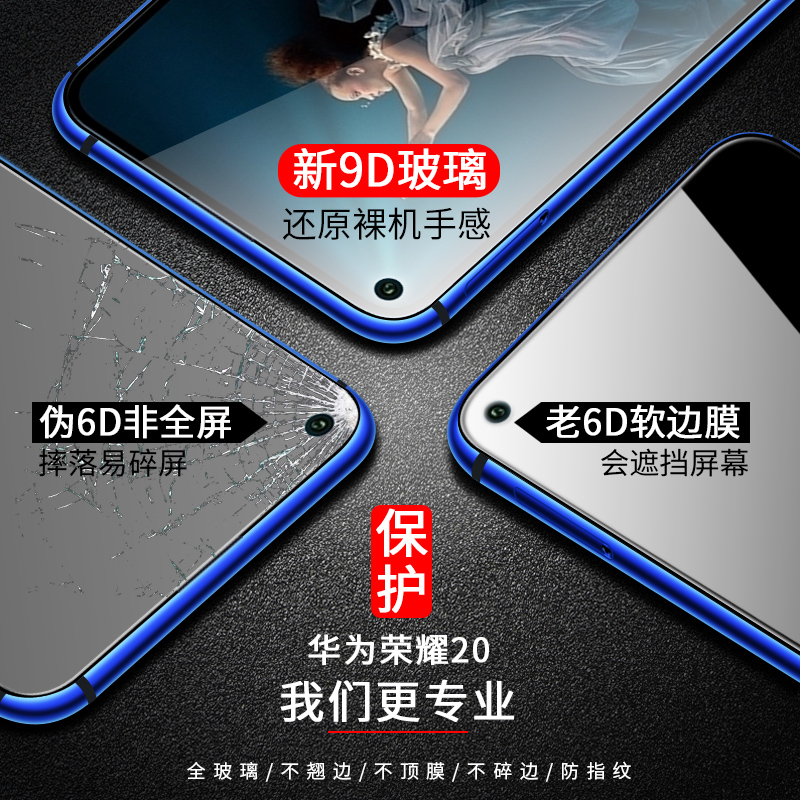华为荣耀20钢化膜20i青春版 20pro手机膜v20全屏20s覆盖honor全包pro防抗蓝光por防摔二十无白边i20防指纹贴膜