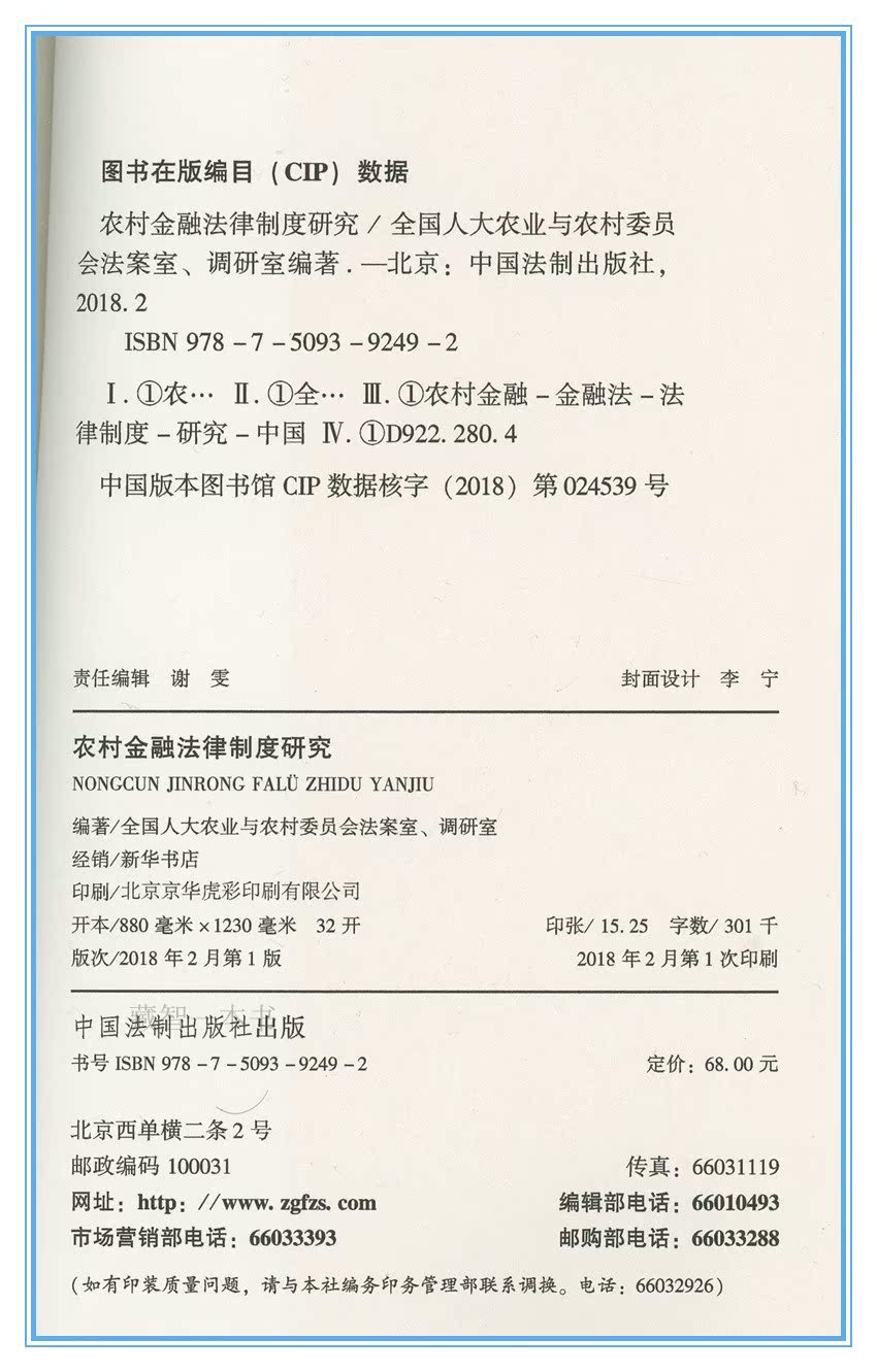 社 中国法制出版 9787509392492 农村与农村委员会法案室 农村金融法律制度研究