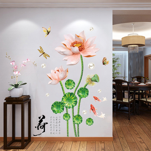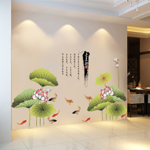 中国风荷花墙贴温馨卧室房间贴画客厅沙发电视背景墙装 饰自粘贴纸