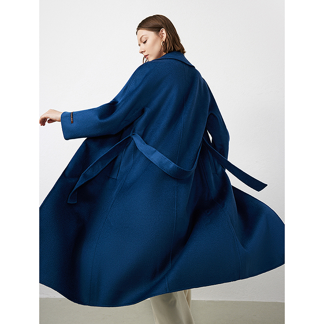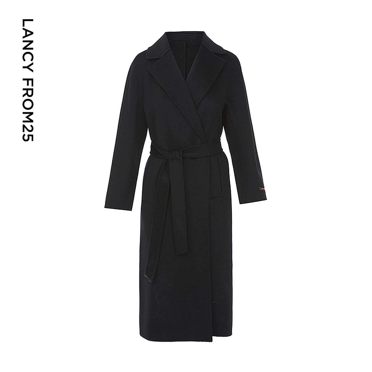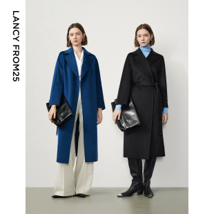 水波纹双面毛呢长款 朗姿纯羊毛收腰修身 外套大衣冬季 免定金