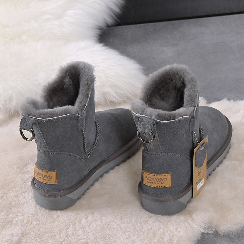 短靴加绒加厚保暖牛皮棉鞋 东北冬季 皮毛一体面包鞋 雪地靴女新款