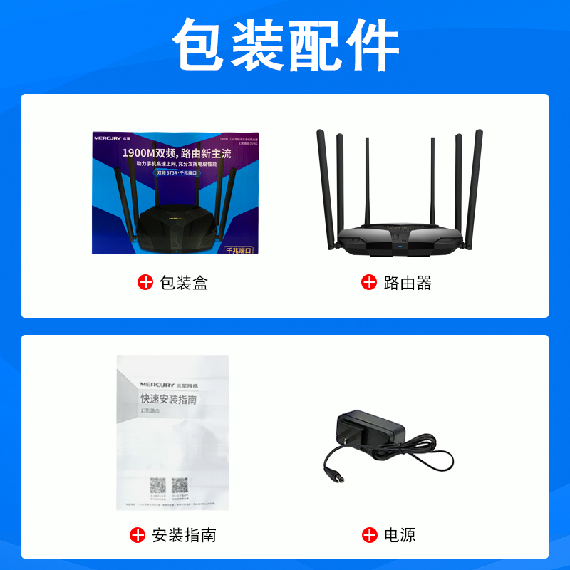 水星AC1900无线路由器5g双频千兆端口家用网络共享高速wifi智能上网大功率穿墙多户型光纤宽带1900兆速 D196G