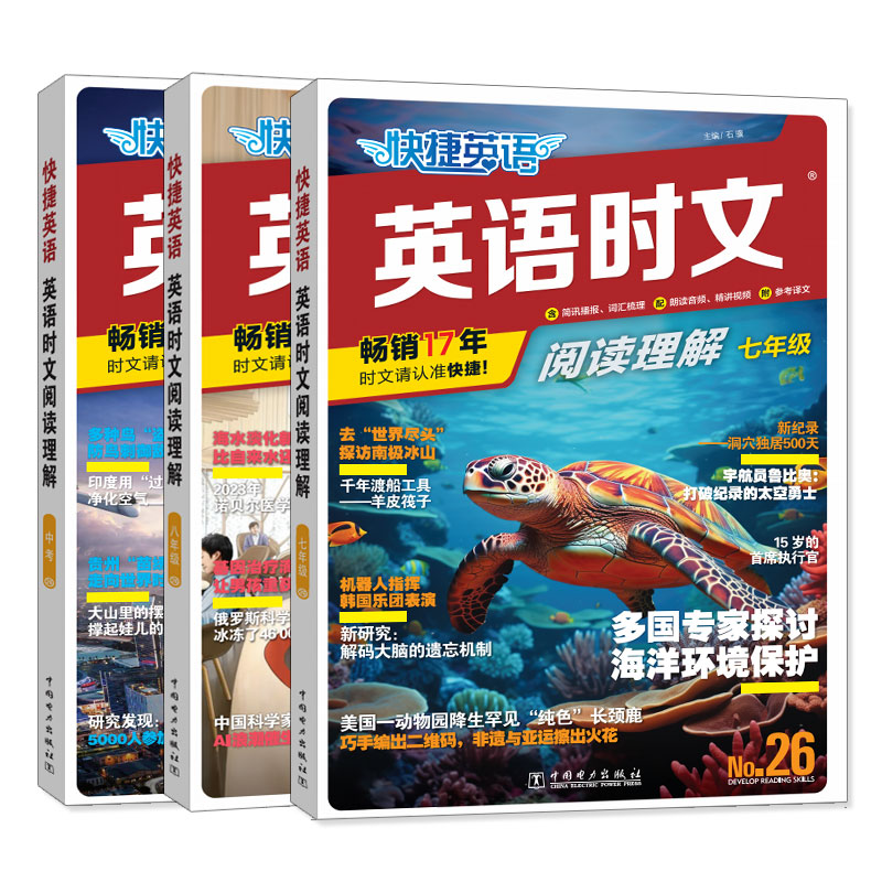 活页快捷英语时文阅读英语七八九年级25期24期上册下册初中英语完形填空与阅读理解组合训练初一初二初三中考 26期新版 2024新版