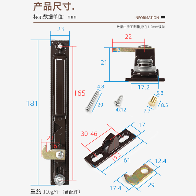 老式 90型铝合金门窗钩锁推拉窗户锁扣移门锁栓搭扣彩铝窗勾锁配件