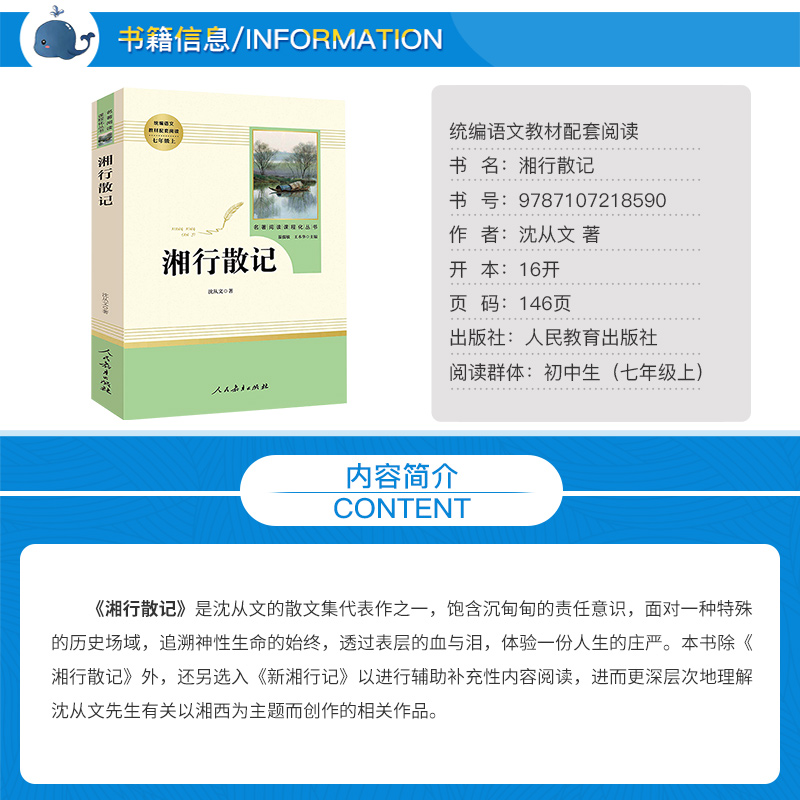 7年级 上RM 包邮 初中语文教材配套阅读初中生人教版 文学书目 七年级上册推荐 无删减 社原著完整版 人民教育出版 沈从文正版 湘行散记