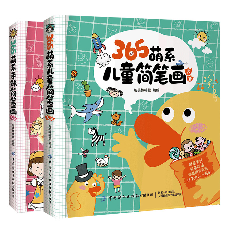 365萌系手账简笔画大全 手账绘画教程书 2册 儿童手绘画画涂鸦本 亲子美术启蒙读物书籍 零基础简笔画入门 365萌系儿童简笔画大全