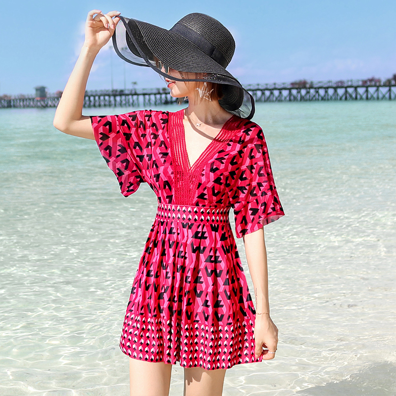 宜肤游泳衣女2025新款 胖mm200斤连体保守女士泡温泉 显瘦遮肚大码