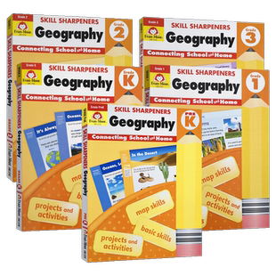 Sharpeners Geography 进口英文书 Moor 幼儿园到三年级少儿英语evanmoor 美国原版 Skill 美国加州教辅 Evan 技能铅笔刀地理练习册